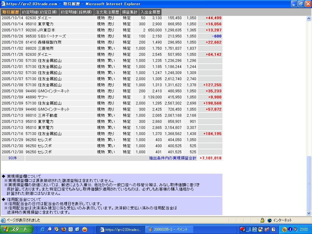 2005年の売買記録 (原版)